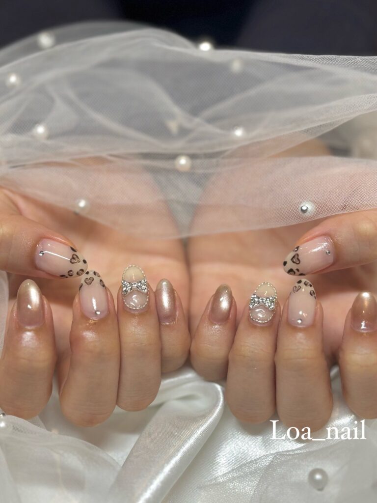 ふんわり輝くマグネットネイルに、さりげないヒョウ柄風ハートをプラス🐆✨