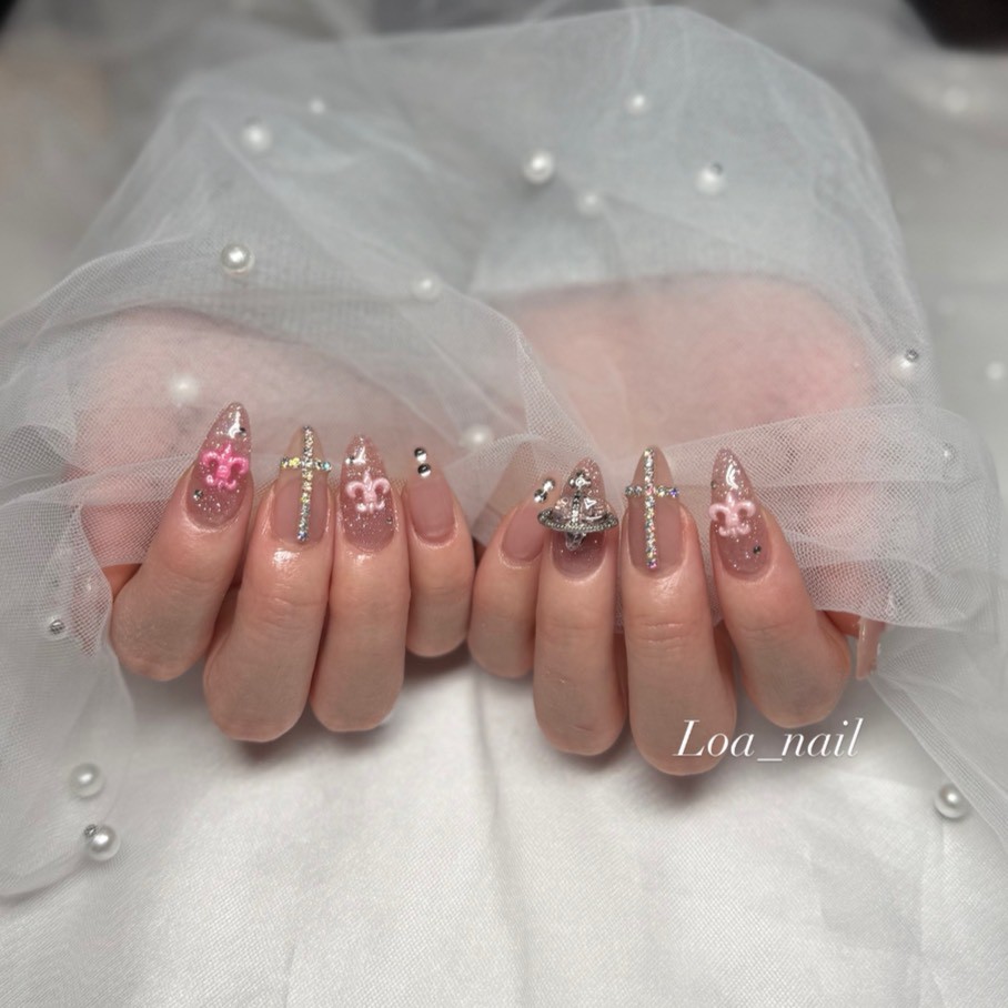 クロスパーツや立体パーツをアクセントに取り入れて、ゴシックな雰囲気をプラスしました✙